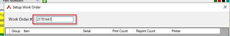 Enter the Work Order number into the box and press Enter.