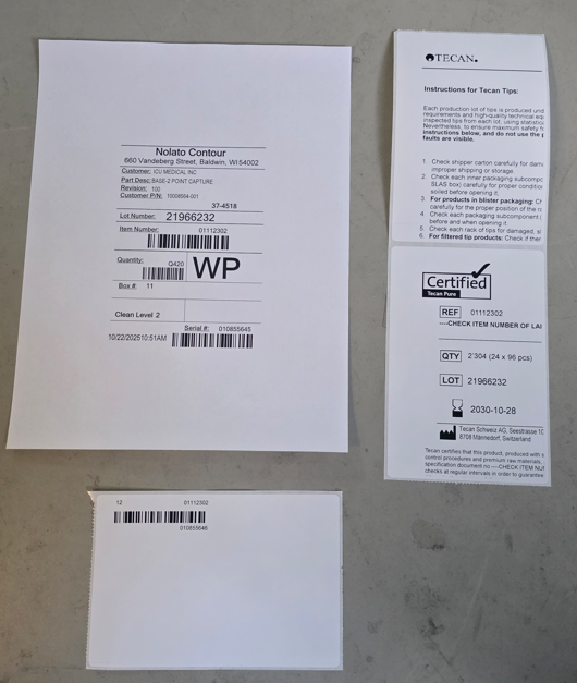 Reference the work instructions for the correct label name associated with the packaging component.