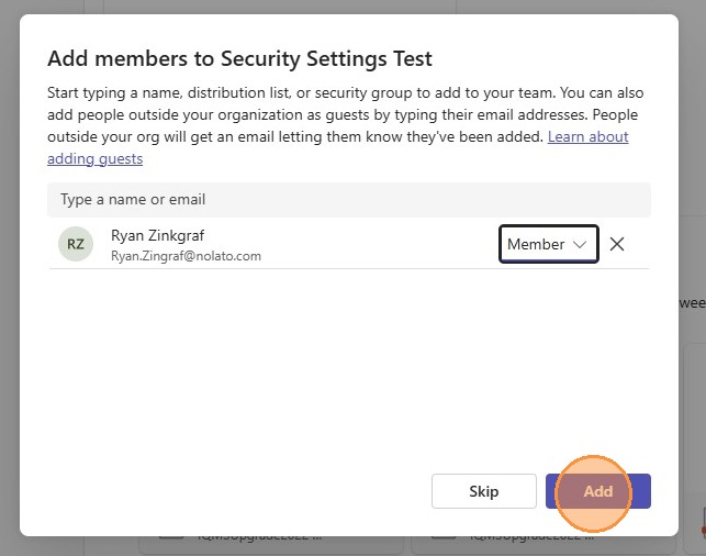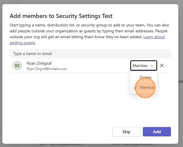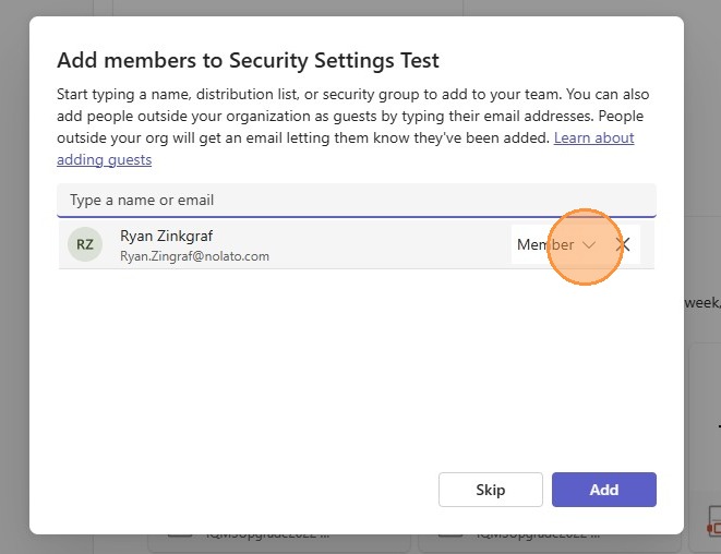 7. Start typing someone's name that you want in the team and select them